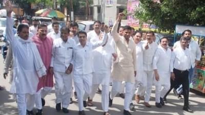 प्रशासन द्वारा हटाई गई दुकानों के खिलाफ अनोखा अंदाज