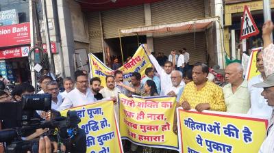 प्रशासन द्वारा हटाई गई दुकानों के खिलाफ अनोखा अंदाज