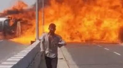 हाईवे बना आग का दरिया, टैंकर हादसे में एक शख्स की दर्दनाक मौत