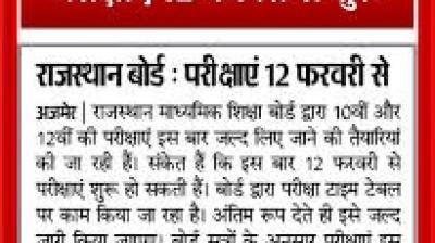 अजमेर|राजस्थान माध्यमिक शिक्षा बोर्ड की ओर से कक्षा 10वीं और 12वीं की बोर्ड परीक्षाएं 12 फरवरी से आयोजित की जाएंगी। परीक्षा के सफल एवं सुचारु संचालन को लेकर बोर्ड ने...