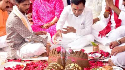राज्यमंत्री गौर ने की गोवर्धन पूजा