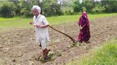 कृषि मंत्री के इलाके में किसानों की ये हालत! बूढ़ा किसान अकेले जोत रहा जमीन