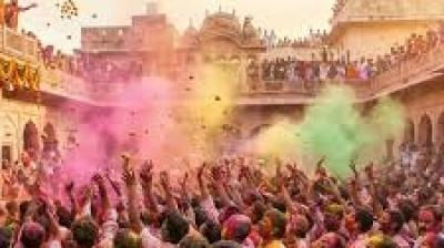 बरसाना में श्रद्धालुओं पर लड्डुओं की वर्षा, उत्सव का भव्य दृश्य