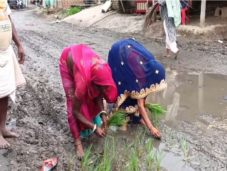उमरिया की महिलाएं हुईं आगबबूला, सड़क की जगह बोया धान, वीडियो वायरल