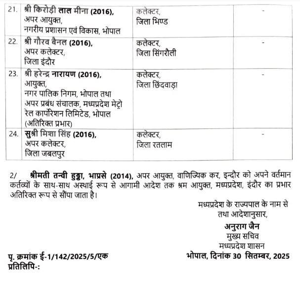 मोहन सरकार का जंबो तबादला: 24 IAS अधिकारियों को नई पोस्टिंग, 10 कलेक्टर हटे