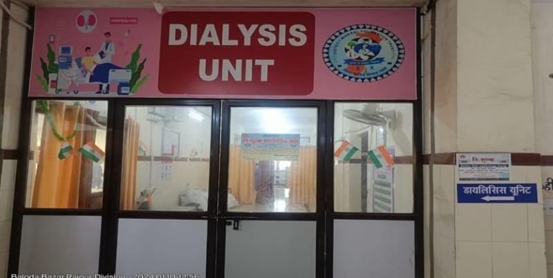 प्राप्त जानकारी के अनुसार जिला चिकित्सालय बलौदाबाजार में डायलिसिस की सुविधा 15 अगस्त 2022 से प्रारंभ की गई है। डायलिलिस यूनिट में कुल 6 डायलिसिस मशीन उपलब्ध है। अब तक कुल 169 मरीज डायलिसिस सुविधा का लाभ ले चुके हैं। प्रारंभ से अभी तक लगभग 10305 डायलिसिस सेशन हो चुके है। प्रतिमाह लगभग 300 बार डायलिसिस किया जा रहा है। वर्तमान में 27 एक्टिव मरीज हैं।