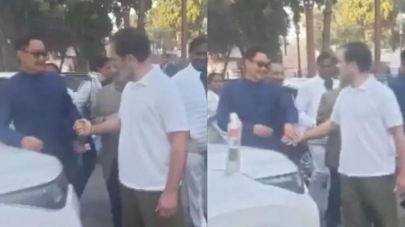 राहुल गांधी से मिले केंद्रीय मंत्री रिजिजू, मजाकिया अंदाज में कहा..........थोड़ा डर गया मैं…