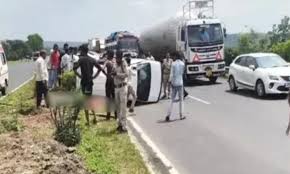 उदयपुर|चित्तौड़गढ़-उदयपुर नेशनल हाईवे पर गुरुवार देर रात एक दर्दनाक सड़क हादसे में बिजनेसमैन, उसकी पत्नी समेत चार लोगों की मौत हो गई, जबकि उनका छह साल का बेटा गंभीर रूप से घायल होने के बावजूद बच गया। हादसा भादसोड़ा थाना क्षेत्र के नरबदिया गांव के पास रात करीब 2 बजे हुआ। मृतक परिवार उदयपुर में एक शादी समारोह में शामिल होकर कार से चित्तौड़गढ़ लौट रहा था।प्रत्यक्षदर्शियों और पुलिस के अनुसार, हाईवे पर अचानक एक जानवर सामने आ गया। उसे बचाने के प्रयास में कार का संतुलन बिगड़ गया और वाहन डिवाइडर से टकरा गया। टक्कर के बाद कार दूसरी लेन में पहुंच गई, जहां सामने से आ रहे ट्रेलर से उसकी जोरदार भिड़ंत हो गई। टक्कर इतनी भीषण थी कि कार के परखच्चे उड़ गए और मौके पर ही चार लोगों की मौत हो गई।
