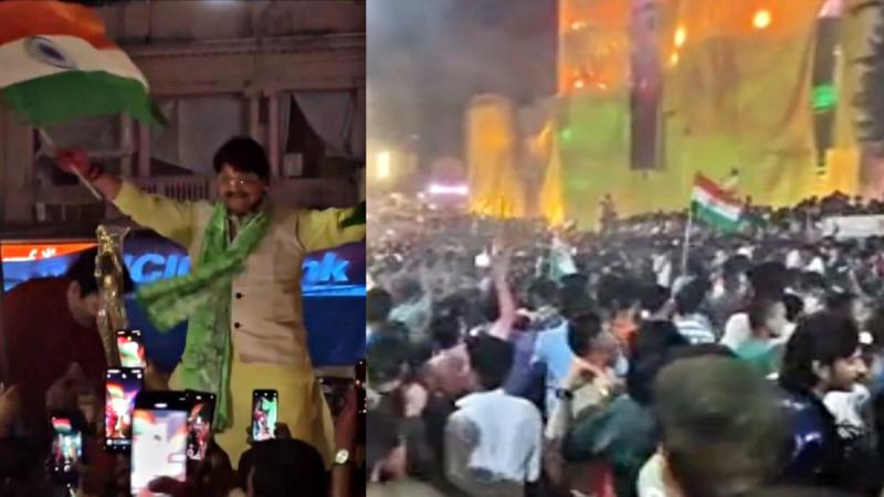 इंदौर राजवाड़ा में जीत का जश्न, विजयवर्गीय तिरंगे के साथ आए नजर