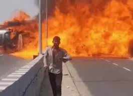 हाईवे बना आग का दरिया, टैंकर हादसे में एक शख्स की दर्दनाक मौत