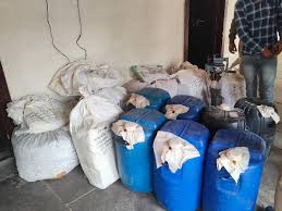 पुलिस टीम गठित कर घेरबसई से तिजारा रोड पर बालियावास में एक अवैध देसी शराब निर्माण करने की हाईटेक फैक्ट्री को पकड़ा। फैक्ट्री से निर्मित देसी शराब की 390 पेटी एवं शराब बनाने के उपकरण, शराब के कर्टन पर बारकोड लगाने की मशीन, एक थर्मामीटर, एक शराब की डिग्री नापने का यंत्र, एक सफेद प्लास्टिक पानी की टंकी, दस प्लास्टिक के 50 लीटर के केन, शराब पैक करने वाले प्लास्टिक के 600 खाली पव्वे बिना ढक्कन के, शराब के पव्वों पर डाट लगाने के लाल व नीले रंग के ढक्कन के दो बड़े कर्टन, पव्वे पर लेवल लगाने का एक बंडल, पव्वों को निर्मित शराब से भरकर डाट लगाकर उसको सील करने की दो लोहे की मशीन तथा एक बाइक जब्त की है। मौके से पुलिस ने सुखसिंवदर पुत्र गुरमीत सिंह निवासी जैतपुर दिल्ली हाल तिजारा रोड बलियावास शेखपुर अहीर जिला खैरथल-तिजारा को गिरफ्तारकिया है।