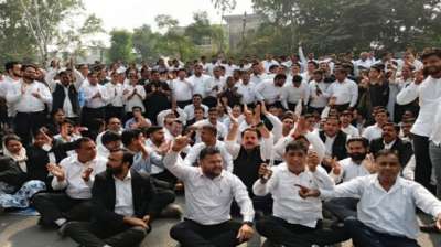 कचहरी में युवा वकीलों का विरोध जारी