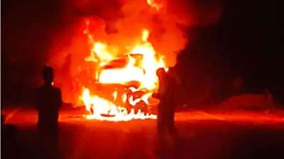 उदयपुर में फोर व्हीलर से टकराकर बाइक का पेट्रोल टैंक हुआ ब्लास्ट