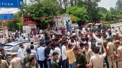 जयपुर: राजस्थान विश्वविद्यालय में छात्रों का हंगामा, पुलिस ने किया लाठीचार्ज