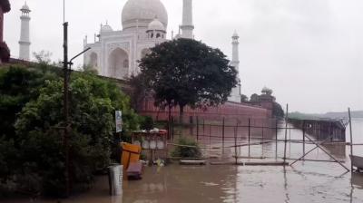 ‘ताजमहल’ बना ‘जलमहल’: यमुना का पानी ऐतिहासिक धरोहर तक पहुंचा, पर्यटक परेशान